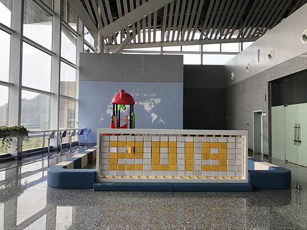 兒童游樂設施,面積超50平米,設置有翻翻樂墻,海洋球池,多功能滑梯,并在墻面張貼有世界地圖,柔性塑膠地面安全可靠還繪制有“跳房子”的娛樂圖樣,是攜帶兒童的旅客在候機過程中的新去處。